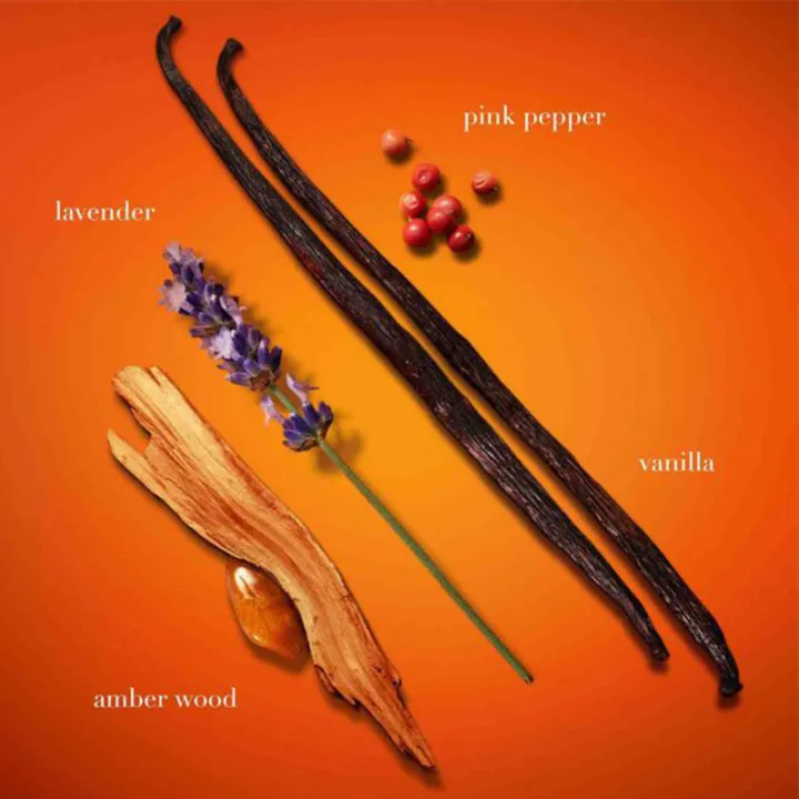PINK PEPPER ESSENCE Spicy pink pepper essence gets combined with the addictive sugar coated chestnut accord to bring a new originality to the composition. VANILLA ESSENCE The intense essence of vanilla, mixed with the slightly leathery suede accord create this unique sensual signature. AMBERY WOODS ACCORD Associated with a new Boubon Vetiver note, the ambery woods accord intensify the vibrant side of the sillage.
